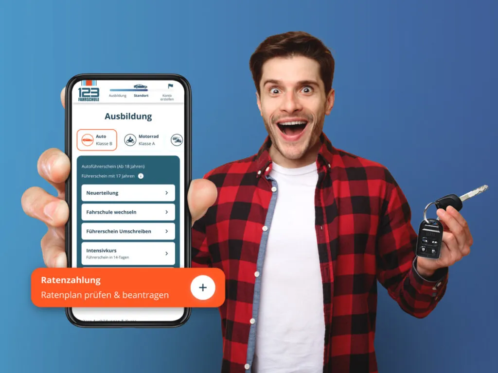 Bei der 123fahrschule musst du dir keine Sorgen machen, die gesamten Führerscheinkosten auf einmal stemmen zu müssen – wir bieten dir flexible Zahlungspläne, mit denen du bequem in Raten zahlen kannst.